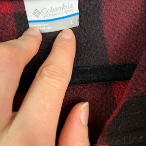 Warm Columbia fleece with a stylish red and black checkered pattern. Ideal for cold weather. Mens size large. Preowned in excellent condition, with no noted flaws. Approximate measurements in photos. Please reach out with questions!