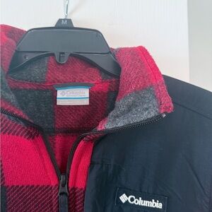 Columbia Men's Red and Black Checkered Zip-Up Sweater