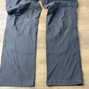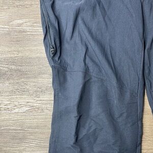 Columbia Mens Royce Peak Black OmniShield Articulate Knee Flex Nylon Pants 38x32. In excellent used conditon, only flaw I see is on one belt loop- shown in picture. See pictures for measurements and fabric content.