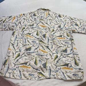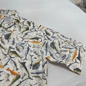 Columbia Mens Shirt Large Multicolor Saltwater Fish Pattern Short Sleeve Outdoor
