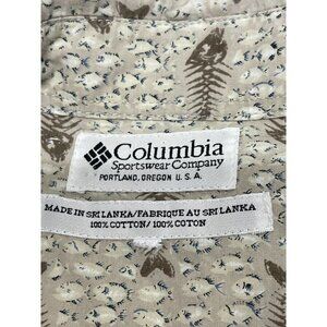 Columbia Mens Shirt Short Sleeve Button Front Fish Bone Tan Sportswear.