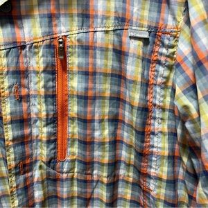 This Columbia Men's Short Sleeve Button Down Omni-Shade Shirt in Plaid is perfect for any occasion, whether it's for travel, casual wear, or work. The shirt is made of a lightweight and breathable material, with sun protection to keep you safe from harmful UV rays. It features a multicolor plaid pattern, short sleeves, and a button closure.
