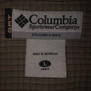 Columbia Men's Size Large Green Gray Short Sleeve Button Up Plaid Shirt