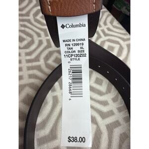 Upgrade your wardrobe with this Columbia Men's Leather Belt, brand new with tags (NWT). Designed for durability and everyday style, this tan genuine leather belt features a silver-tone buckle and a classic design that pairs perfectly with jeans, chinos, or dress pants.