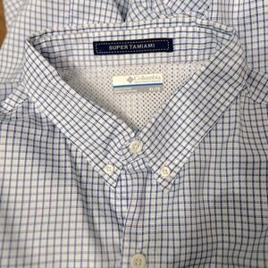 Columbia Men's Super Tamiami Light Blue Gingham Long Sleeve Shirt Size XL