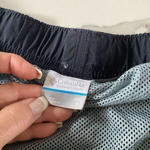 Columbia Mens Sz 2XL Nylon Shorts Navy Elastic Waist Belt Mesh Lining Fishing