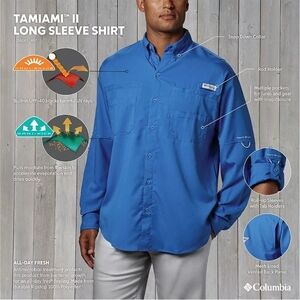 Columbia Men's Terminal Tackle Long Sleeve Fishing Shirt Orange S