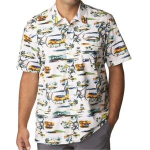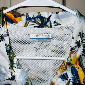 Columbia Men's Trollers Best Fish Print Mesh Back Button Down Shirt Size Large