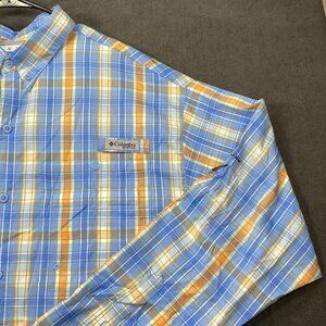 Columbia Mens XL Blue Orange Plaid Long Sleeve Button-Up Shirt Vented Fishing