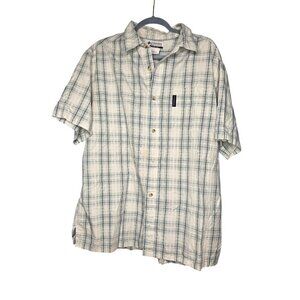 Columbia Mens XL White Blue Cotton Short Sleeve Button Fishing Hiking Shirt