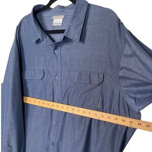 Columbia Mens XXL Omni Wick Button Down Long Sleeve Rip Stop Shirt Navy Blue EUC