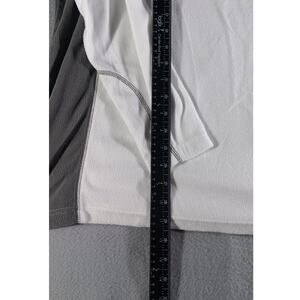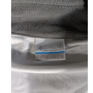 A versatile Columbia Sportswear fleece pullover in size XXL, featuring a clean white front panel and contrasting gray side/back panels. This piece is ideal for layering — wear it under jackets or over tees. The microfleece knit provides warmth while maintaining breathability. With its neutral color scheme, it pairs well with jeans, chinos, or hike gear.