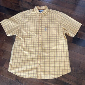 Columbia Men’s plaid short sleeved button down shirt Mustard Yellow Size L
