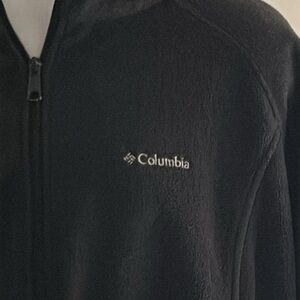Columbia, men’s size 2X, solid black, full zip front, front zip pockets, long sleeves, fleece feel, cotton fabric, inside tag is gone, cinch at bottom waist, very good preowned condition, no known issues , see photos