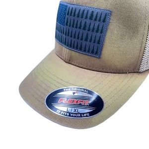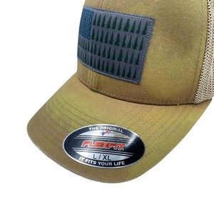 Columbia Mesh Tree Flag Hat Cap Flex Fit Brown Size L/XL