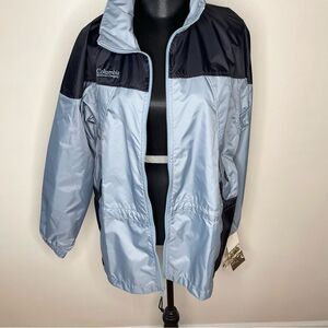 Columbia Minjin Rain Jacket Windbreaker Packable Hood Blue Gray New Medium