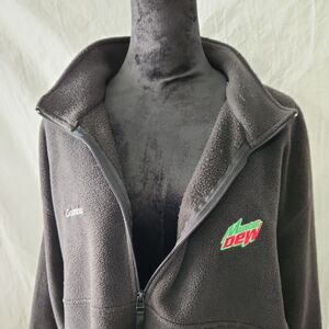Unisex Black 1/4 zip fleece Columbia branded jacket is embroidered with the Mountain Dew logo on the left breast.