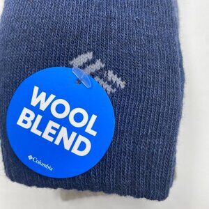 Columbia, NWT, men's wool blend crew socks, four pairs, shoe sizes 6-12, four colors: navy, black, brown, and khaki. Machine wash cold, inside out. OH 9 box 10