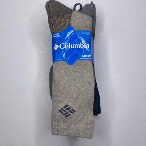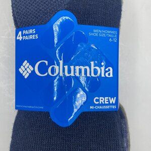 Columbia NWT, men's wool blend crew socks, 4 pairs, sizes 6-12, nvy/blk/brn/kha.