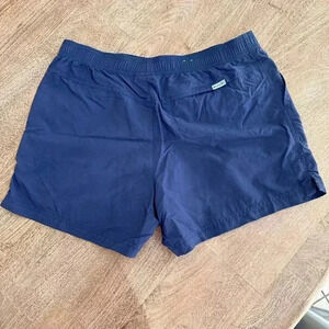 Comfortable and stylish navy blue shorts. Perfect for casual wear. Features a back pocket.