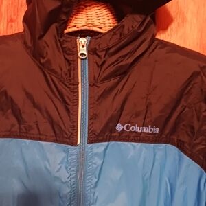 Columbia Nylon Blue & Black Full Zip Hooded Rain & Weather Coat KiDS LARGE