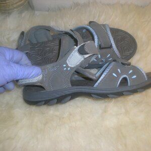 Columbia Omni Grip Leather Open Back Sport Sandals Gray Adjustable Womens 9