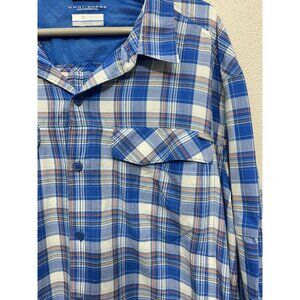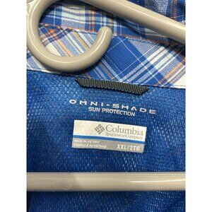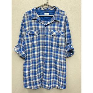 Columbia Omni Shade Men’s Shirt XXL 2XL Blue Plaid Fishing Nylon Roll Tab Sleeve
