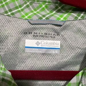 Columbia Omni Shade Shirt Mens L Green Plaid Short Sleeve Button Up