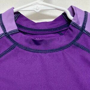 Columbia Omni Shade Short Sleeve Girls Large Purple Fillie G Sun Splashes Activewear Tee Shirt. Designed with an array of features including UPF 50 sun protection and moisture-wicking technology, this basic purple T-shirt ensures comfort and durability during any outdoor activity. From basketball to water sports, the versatile tee is tailored for all seasons with easy care and breathability in mind. The tee's crew neck and short sleeves offer a classic fit that's perfect for both casual wear and athletic pursuits. The Omni Shade and Omni Wick technologies work together to keep your child cool and dry, whether they're hitting the trails or the court. Machine washable and crafted from a blend of polyester and elastane, this T-shirt from Columbia's acclaimed Omni Shade product line is ready for anything their schedule can throw at it.