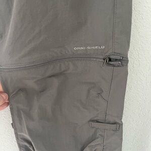 Gray convertible outdoor pants. Cinchable cuffs at bottom. Zip off into shorts. Belt loops. In excellent condition.