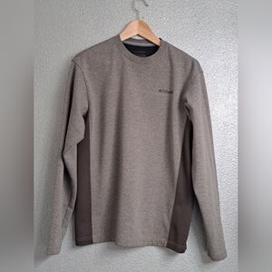 in very good condition, no stains, rips or loose threads, crew neck, heathered grey shell with brown side panels, stitched lettering on front, size & material tags have been cut out, pit to pit 21"  sleeve 24.5"  length 26", comes from a pet & smoke free home