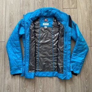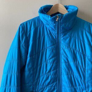 This jacket is the ideal mid layer - sandwich in between a light base layer and a durable shell for a winter kit to keep you toasty and temperature regulated. Lovely bright blue colour with minimal wear. Small marks on elbow and nape of the neck. Zippered pockets. No rips or tears - flaws do not impact the integrity of the jacket. Size M. See photos for measurements and details.