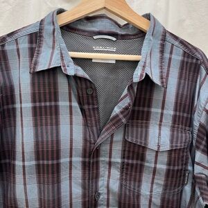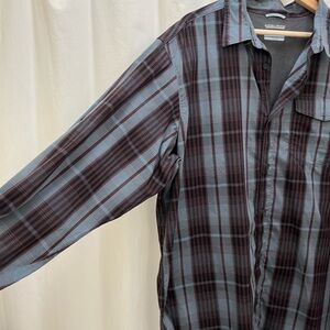 Columbia Omni Wick Maroon Blue Plaid Vented Longsleeve Button Down