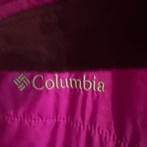Bright pink puffer jacket by Columbia. Lightweight and warm. Ideal for chilly days.