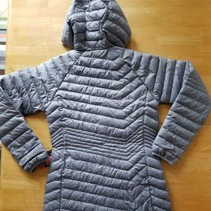 Extra warm. The thermal reflective lining captures body heat and seals it in. Get extra coverage from the cold with a mid-thigh hem and hood.