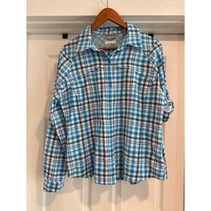 Columbia Omni-Shade Sun Protection Long Sleeve Plaid Blue Women's Size Large
