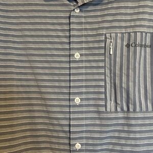 Columbia Omni-Shade men’s blue striped short sleeve button down shirt size XL