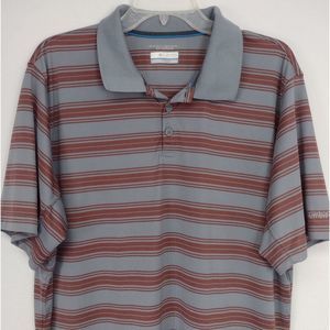 Columbia Omni-Shade Polo Grey Brown Stripe Short Sleeve Sz XL Activewear Casual
