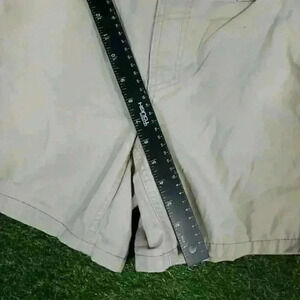 The shorts are solid beige in color and have a regular fit, with a waist size of 34 inches and an inseam of 10 inches. They are suitable for both casual and workwear occasions, and are ideal for men who love to hike or explore the great outdoors. The shorts are designed with advanced repellency technology to keep you comfortable and dry, and are perfect for any weather conditions.