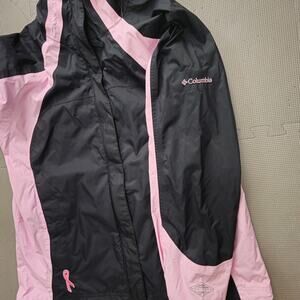 Columbia Packable Jacket Breast Cancer Logo Black/Pink Sz. L Water Proof