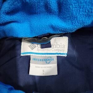 Columbia Omni-Tech Jacket Small Kids Blue Shell Zip Nylon Coat, Fleece neck