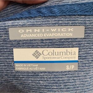 mens Blue Hooded Columbia Omni-Wick hooded pullover, lightweight longsleeve top. excellent used condition. mens size small.