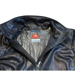 The Columbia Omni-heat Soft Shell Full Zip Jacket Coat in women's size large features a shiny black exterior, making it a stylish and versatile option for various occasions. With its short length and long sleeves, this bomber-style jacket is perfect for travel, casual outings, workwear, or even a party or cocktail event. Made from polyester with a softshell fabric type, this vintage-inspired piece offers both comfort and durability. The full zip closure, along with logo accents and pockets, adds both functionality and style to this classic outdoor-themed jacket, ideal for the winter, fall, or spring seasons.