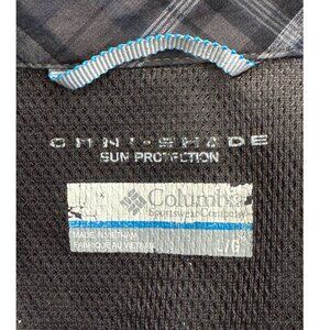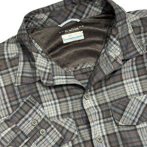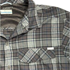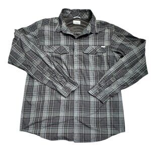 Columbia Omnishade Gray & Blue Plaid Button-Down Shirt Outdoors Mens Size Large
