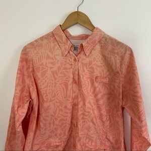 Columbia Orange Peach Floral Leaf Print Vented Top