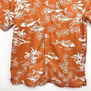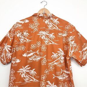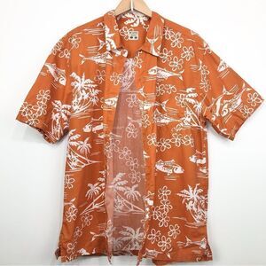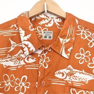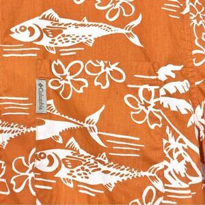 Columbia Orange Tropical Fish Cotton Button Down Short Sleeve Shirt