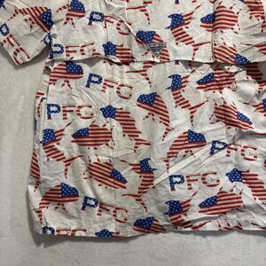 Columbia PFG American Flag Fish Shirt Men's Red White Blue Short Sleeve Large