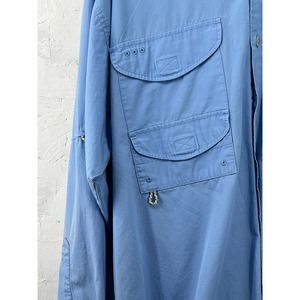 Columbia PFG Bahama II Fishing Shirt Long Sleeve Mesh Lined Flap Back Blue MenMeasures approx.: