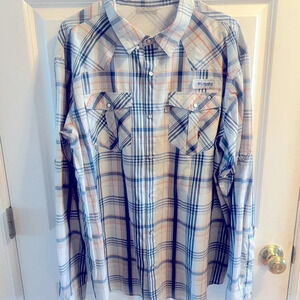 Columbia PFG Beadhead Guide Plaid L/S Shirt Size Large Pearl Snaps
