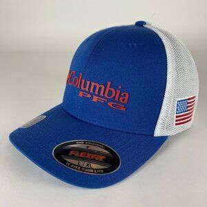 Item Name: Columbia PFG Mens Blue White USA Stretch Fitted Hat New